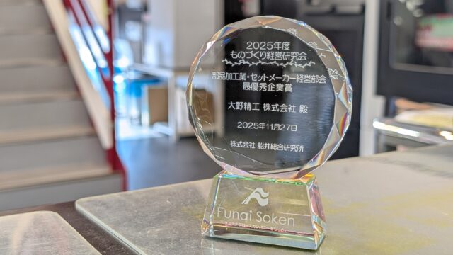 この度、船井総合研究所 2025年度ものづくり経営研究会 部品加工工業経営部門にて最優秀企業賞を受賞いたしました。